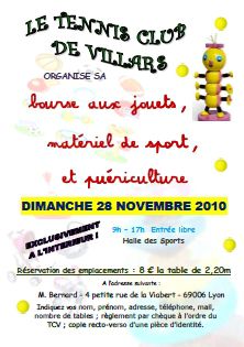 Le Dimanche 28 Novembre prochain se tiendra une bourse aux jouets à Villars les Dombes organisée par nos colllègues du TC Villardois.