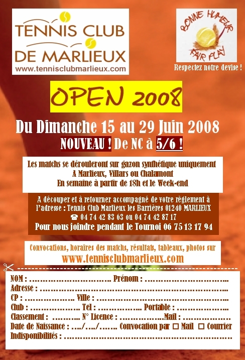 L'Open 2008 est bientôt là et l'Affiche du Tournoi est disponible ainsi que les bulletins pour s'inscrire
